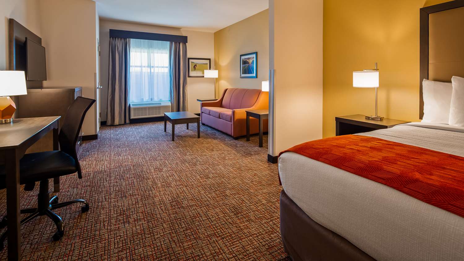 92 rooms with multiple suite options, indoor heated saltwater pool, outdoor lounge area with a fire pit, 24-hour fitness center, 24-hour business center, 24-hour convenience store, onsite laundry, and a complimentary hot breakfast!