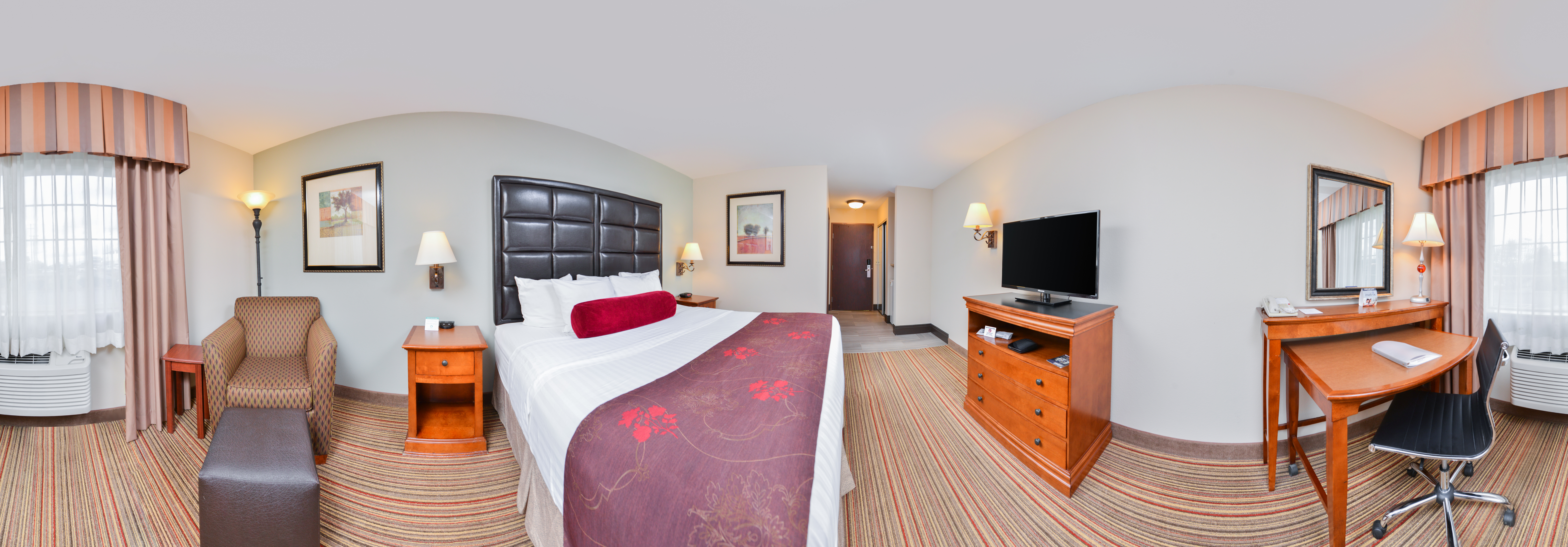 24 hour desk, indoor pool and hot tub, full hot breakfast buffet, interior entrances. Close to shopping, cinemas and restaurants.