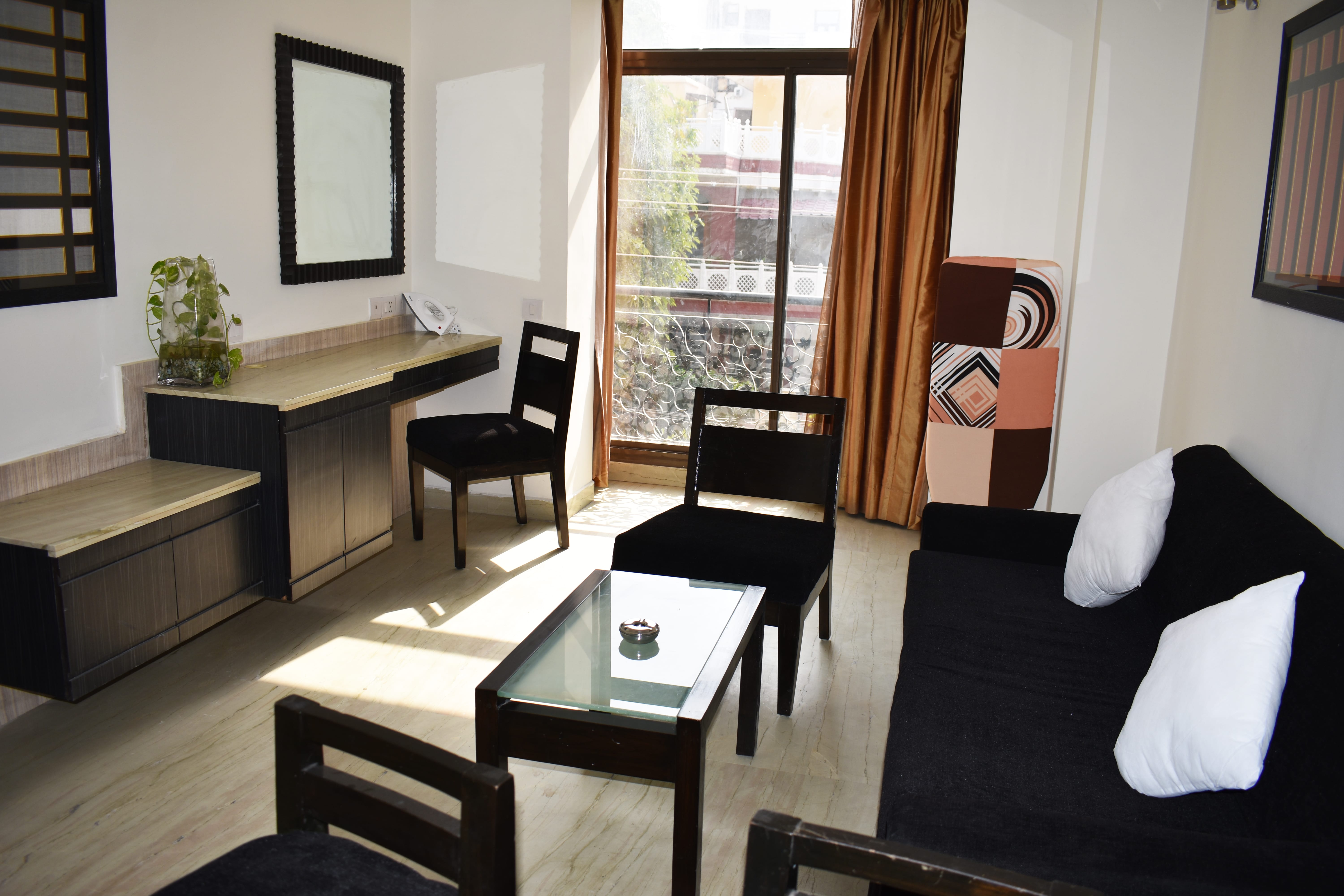 A Fully Furnished Serviced Apartment in Sector 40, Gurugram with a Fully Equipped and Functional Kitchen is available for guests. It is a Private Apartment with a practical layout in one of Gurgaon's most posh colonies, close to the Fortis Hospital. It is one of the Best-Serviced Apartments in Gurgaon. Bedchambers Serviced Apartments cater to the needs of all guests, providing them with all amenities. The property is Fully Equipped with all the amenities one would expect to find in a home to offer guests home-like comfort. Regular sanitization and other maintenance practices are carried out to ensure the upkeep of the Serviced Apartment in Gurugram. Our Apartments are cleaned regularly, and linens are changed twice a week in order to prevent the spread of any viruses and maintain the hygiene of the space. We strive to provide our guests with a high level of comfort, so we provide amenities such as high-speed Wi-Fi for a smooth work-from-home experience. The Serviced Apartment in Gurgaon has been Furnished to provide guests with a relaxing and comfortable experience, including a king-sized bed and a fully air-conditioned apartment. We invite all kinds of guests to our properties; couples are especially welcome. Ours is a fur-friendly property, so pets like cats and dogs are allowed (upon request on a chargeable basis). Check-in time at our property begins at 2:00 pm, and check-out time begins at 10:00 am. We accept local IDs for verification purposes during booking. Guests are requested to kindly share their email ids once they reserve the apartment upon booking. We are looking forward to entertaining guests seeking temporary shelter as ours is a home away from home. Never miss the opportunity to stay in the Fully Furnished Apartments of BedChambers Located in Sector 40 in Gurgaon.