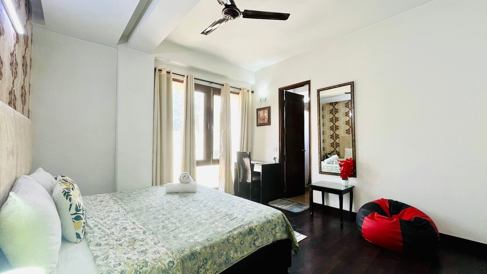 The Green Park Studio is located right next to the main market, and short walk from Hauz Khas Village & Green Park Metro Station. With modern furnishings, it has a large Bay window that provides plenty of natural light.