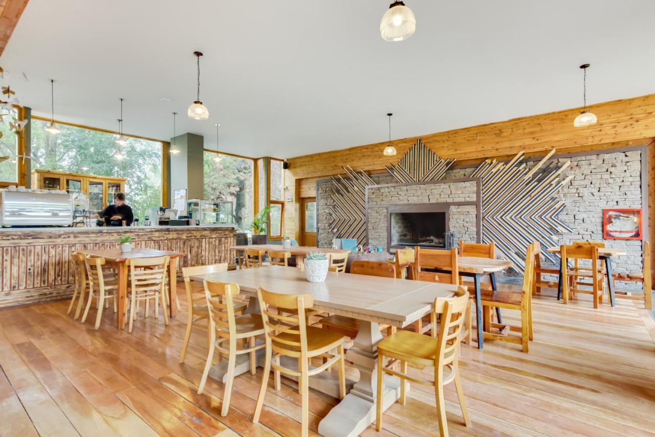 Socialtel sits at the base of Bariloche, the snowy Swiss-Alpine-style town that faces Lago Nahuel Huapi. Featuring a wellness centre, cabin bar, restaurant, and nature lodge adorned with locally curated artwork, our space is truly inspired by its natural surroundings. Plus, guests have the opportunity to spend the day rafting, fishing, climbing, kayaking or skiing with the help of our expert guides. After a day in the mountains, warm up by the fireplace in our lounge area, stretch out at a yoga class or indulge in a hot-stone massage at our spa. Feeling hungry? Flick through our restaurant menu packed with locally-sourced ingredients, crack open a bottle of artisanal beer, or snack on regional chocolate for some extra Patagonian Flavour!